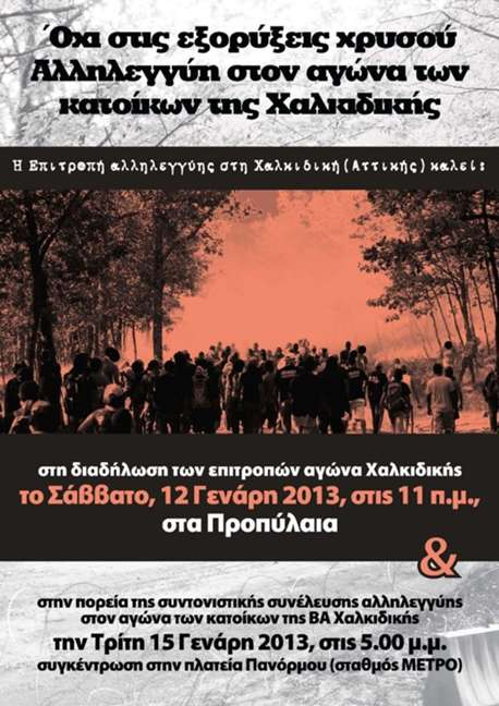 Η Επιτροπή Αλληλεγγύης στη Χαλκιδική (Αττικής) καλεί σε συμμετοχή στη σημερινή συγκέντρωση, καθώς και στην πορεία της Συντονιστικής Συνέλευσης Αλληλεγγύης την Τρίτη 15 Ιανουαρίου στις 17.00 στην πλατεία Πανόρμου (κοντά στο μετρό).