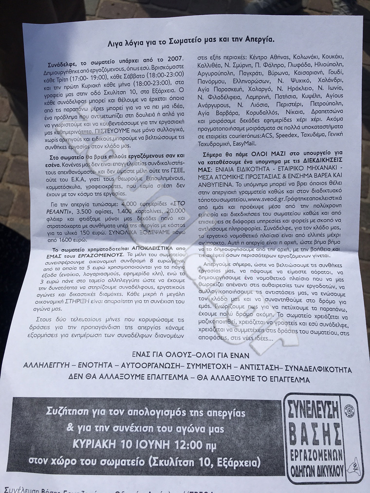 Οι διανομείς μεταξύ άλλων ζητούν μέσα ατομικής προστασίας, την ένταξή τους στα «βαρέα και ανθυγιεινά» καθώς και ενιαία ειδικότητα.