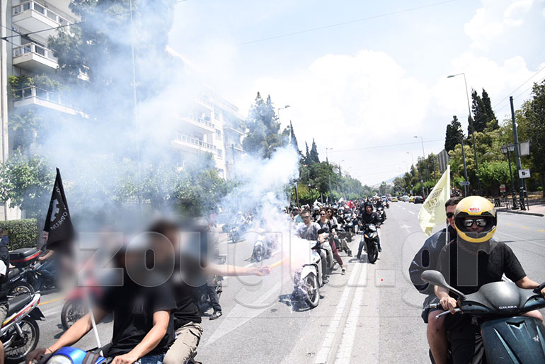 Ακολούθησε μοτοπορεία από κεντρικούς δρόμους της Αθήνας. Η διαδήλωση θα καταλήξει έξω από το Υπουργείο Εργασίας.
