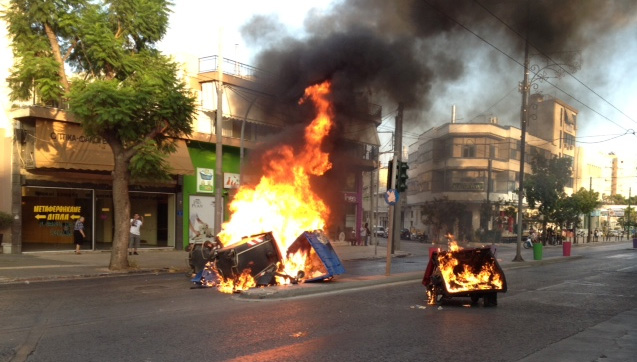 Οργισμένοι νεαροί διαδηλωτές που από νωρίς το απόγευμα είχαν συγκεντρωθεί στην Πλατεία Δημαρχείου στο Περιστέρι, μετά το πέρας της κηδείας του 19χρονου, έστησαν οδοφράγματα με κάδους απορριμμάτων επί της Παναγή Τσαλδάρη, αφού πρώτα τους έβαλαν φωτιά, ενώ στη συνέχεια άρχισαν να πετούν πέτρες και αντικείμενα σε διμοιρία των ΜΑΤ η οποία βρισκόταν σε κάποια απόσταση προκειμένου να μην οξυνθούν τα πνεύματα. Aυτή τη στιγμή η οδός Παναγή Τσαλδάρη παραμένει αποκλεισμένη.