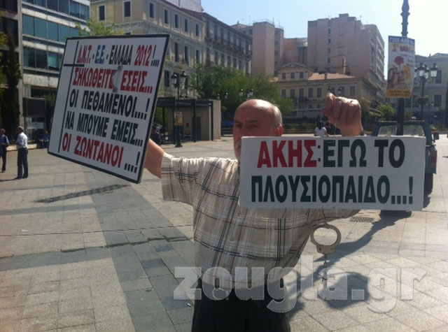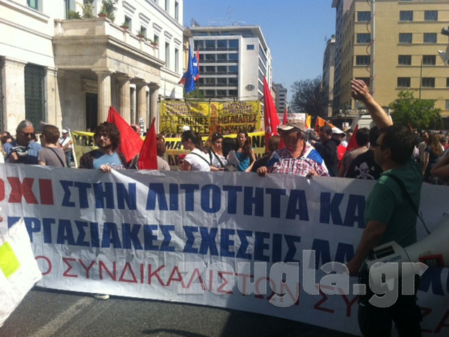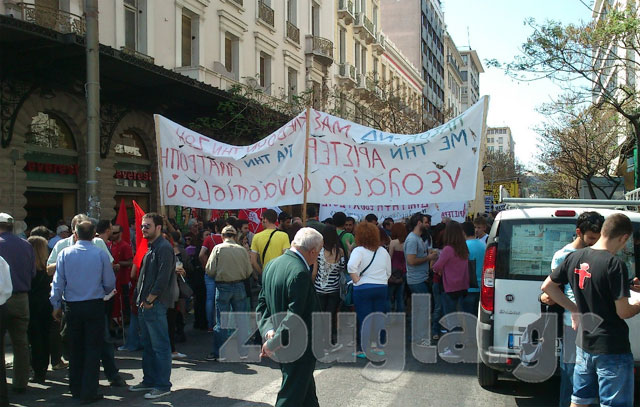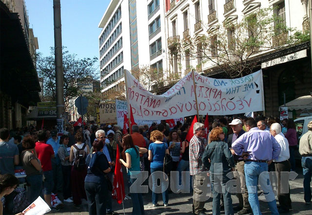 Χιλιάδες πολίτες, νέοι, συνδικαλιστές, εργαζόμενοι έδωσαν το «παρών» στην πλατεία Κοτζιά και την Ομόνοια και σε κεντρικά σημεία πολλών ελληνικών πόλεων, διαμαρτυρόμενοι για τα μέτρα λιτότητας και τις περικοπές στους μισθούς και τις συντάξεις.