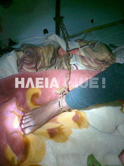 Αστυνομικοί της Αστυνομικής Διεύθυνσης Ηλείας εντόπισαν σε θερμοκήπιο έναν 22χρονο υπήκοο Μπαγκλαντές, δεμένο από το πόδι με αλυσίδα σε μεταλλικό πάσσαλο, προκειμένου να μην αποδράσει.