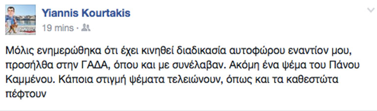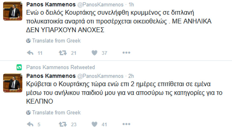 Ο πρόεδρος των Ανεξάρτητων Ελλήνων τους εγκαλεί, καθώς όπως υποστηρίζει, «επιτέθηκαν» στον ίδιο μέσω του ανήλικου παιδιού του από τον ραδιοσταθμό «Παραπολιτικά FM 90,1» προκειμένου να αποσύρει κατηγορίες για τη λίστα κονδυλίων του ΚΕΕΛΠΝΟ.