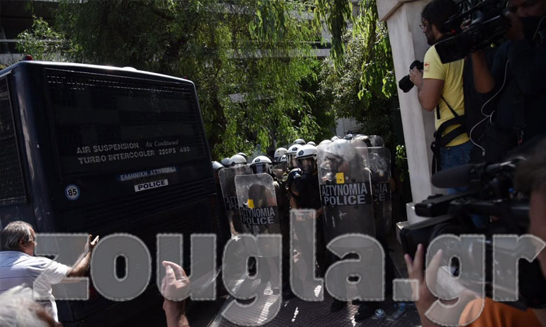 Περνώντας από τη Βουλή, έβλεπαν τον κλοιό των ΜΑΤ να σφίγγει γύρω τους. Όταν επεχείρησαν να προσεγγίσουν το Μέγαρο Μαξίμου, ήρθαν αντιμέτωποι με την αστυνομία που προχώρησε σε ρίψεις δακρυγόνων και χειροβομβίδων κρότων-λάμψης.