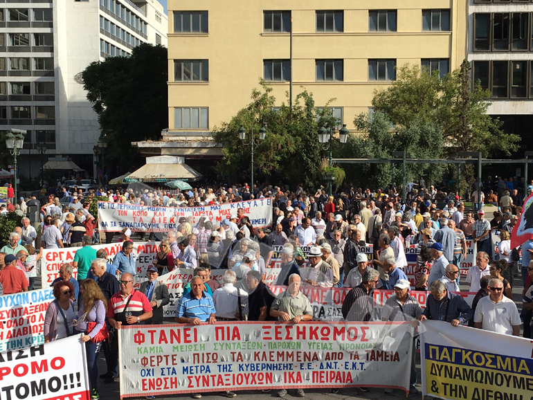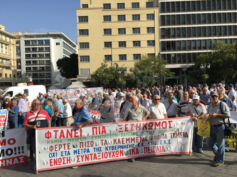 Με συνθήματα όπως «Φθάνει πια», «Σεβαστείτε την Τρίτη Ηλικία», «Φέρτε πίσω τα κλεμμένα», συνταξιούχοι βγήκαν στους δρόμους το πρωί της Δευτέρας για να διαδηλώσουν κατά των νέων περικοπών στις συντάξεις τους στο πλαίσιο των αλλαγών που ψηφίστηκαν από τη Βουλή και περιλαμβάνονται στο νέο Ασφαλιστικό που φέρει την υπογραφή του υπουργού Εργασίας Γιώργου Κατρούγκαλου.