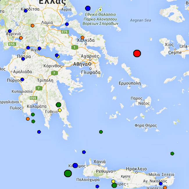 Το επίκεντρο του σεισμού ορίζεται στα 49 χλμ. ανατολικά της Άνδρου και το εστιακό του βάθος στα 13 χλμ.
