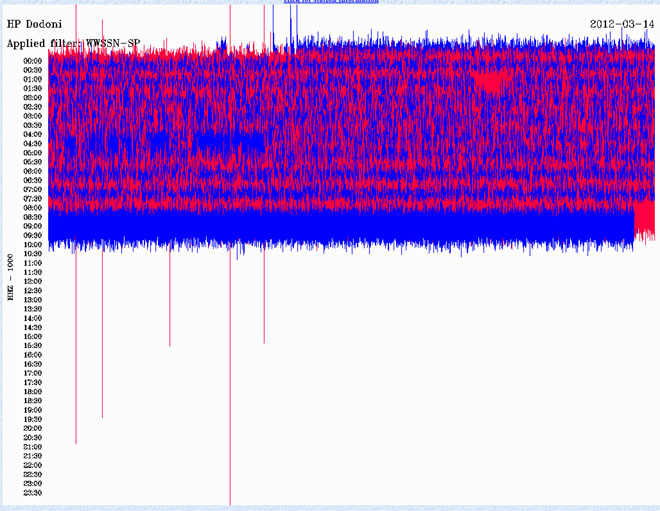 (Ο σεισμός όπως καταγράφηκε από τον σεισμογράφο που είναι τοποθετημένος στη Δωδώνη)