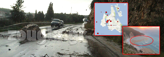 Την ίδια στιγμή κατολισθήσεις σημειώθηκαν στο ορεινό δίκτυο, τζαμαρίες καταστημάτων έσπασαν, στέγες παλαιών σπιτιών κατέρρευσαν, ενώ στο Ληξούρι ρωγμές έκαναν την εμφάνισή τους στον μόλο. Ανοικτό παραμένει το ενδεχόμενο οι κάτοικοι που αντιμετωπίζουν προβλήματα στέγασης να μεταφερθούν προσωρινά στο κλειστό γυμναστήριο της πόλης.