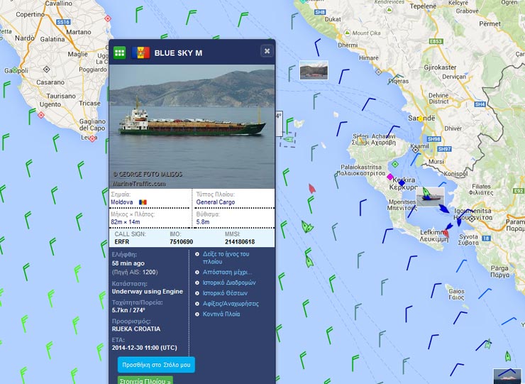 Εν μέσω των δραματικών εξελίξεων γύρω από την τραγωδία με το «Norman Atlantic» ξεκινά ένα νέο θρίλερ με το «ΒLUE SKY Μ», σημαίας Μολδαβίας, επιβάτης του οποίου εξέπεμψε σήμα κινδύνου, ενώ το φορτηγό πλοίο έπλεε δυτικά της Κέρκυρας.