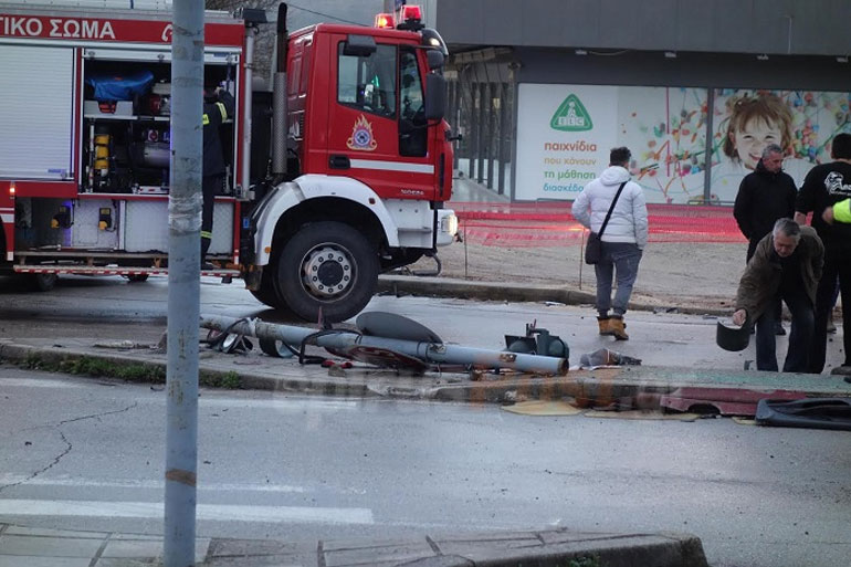 Αποτέλεσμα ήταν αυτό να καρφωθεί στον στύλο που βρίσκονταν στη διαχωριστική νησίδα και ο 24χρονος να εκσφενδονιστεί από τη θέση του οδηγού και να καταλήξει αρκετά μέτρα μακριά.