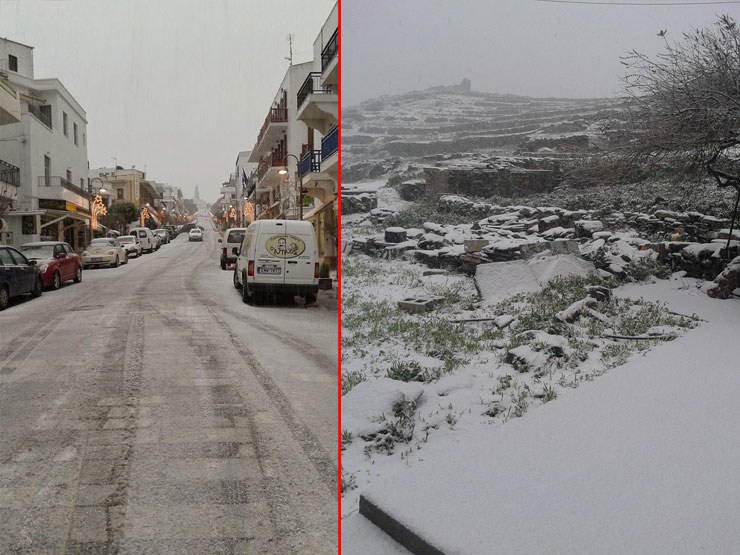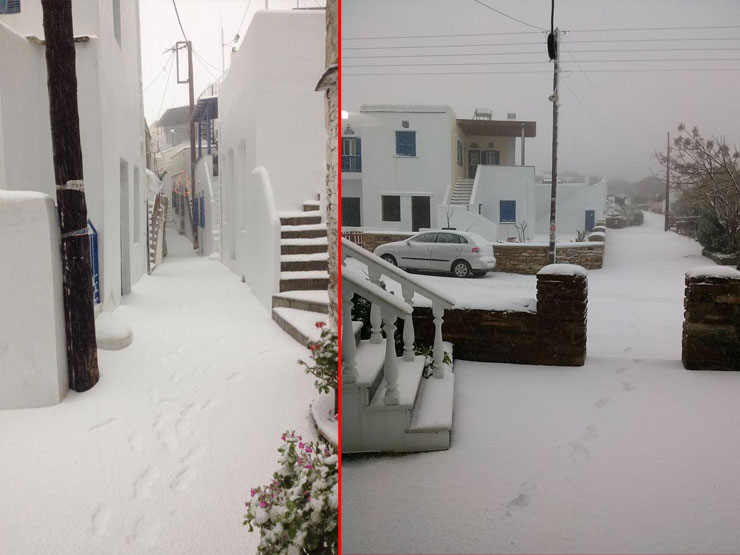 Άσπρη μέρα είδαν κάτοικοι σε Νάξο, Τήνο, Σύρο και Πάρο, όπου τμήματα των τεσσάρων νησιών καλύφθηκαν από το χιόνι.