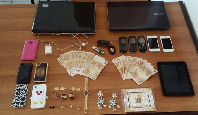 Στο πλαίσιο των ερευνών, κατασχέθηκαν διάφορα κοσμήματα, το χρηματικό ποσό των 1.300 ευρώ, φορητοί ηλεκτρονικοί υπολογιστές και κινητά τηλέφωνα, ενώ η συνολική αξία των κλοπιμαίων εκτιμάται ότι ξεπερνά τα 6.000 ευρώ.