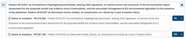 Αξίζε να αναφερθεί ότι την ίδια μέρα θα συζητηθεί και άλλη αναφορά του Κ. Γκίκα με αριθμό 1710/2013 σχετικά με τον ΧΥΤΑ Φυλής.