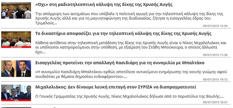 Επίσης, ο κ. Μιχαλόλιας αναφέρθηκε σε ρεπορτάζ την περίοδο των συλλήψεων των κοινοβουλευτικών στελεχών της Χρυσής Αυγής, τα οποία φιλοξενούσαν δηλώσεις πολιτικών προσώπων, όπως του τότε υπουργού Δημόσιας Τάξης, Νίκου Δένδια και του σημερινού Προέδρου της Δημοκρατίας και τότε βουλευτή της ΝΔ, Προκόπη Παυλόπουλου, για την υπόθεση της Χρυσής Αυγής που χαρακτήριζαν την Χρυσή Αυγή εγκληματική, ναζιστική οργάνωση. Επιπλέον, ο κ. Μιχαλόλιας επικαλέστηκε και άλλα δημοσιεύματα, τα οποία έκαναν λόγο για την ύπαρξη κυβερνητικής εντολής για την εξάρθωση της εγκληματικής οργάνωσης.