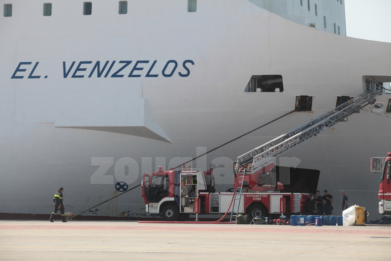 Το «Ελευθέριος Βενιζέλος» έχει πάρει κλίση στο λιμάνι, λόγω της συσσώρευσης υδάτων από την πυροσβεστική επιχείρηση, εντός του γκαράζ του πλοίου. Οι λιμενικές αρχές εκτιμούν ότι μόλις ολοκληρωθεί η επιχείρηση και υποχωρήσουν τα νερά που έριξε η Πυροσβεστική, η κλίση του πλοίου θα επανέλθει χωρίς πρόβλημα.