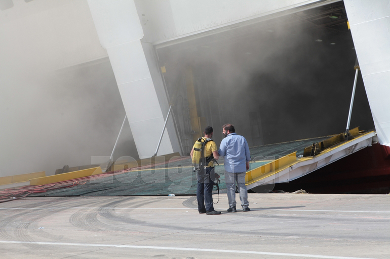 Παρά το ότι σήμερα το πρωί άνοιξε ο καταπέλτης του πλοίου και ξεφορτώθηκαν κάποια φορτηγά για τη διευκόλυνση των πυροσβεστών, η πρόσβαση τους στα γκαράζ δεν είναι εύκολη και σύμφωνα με την τελευταία πληροφόρηση, αναγκάστηκαν να ανοίξουν τρύπες στην εξωτερική λαμαρίνα του «Ελευθέριος Βενιζέλος» προκειμένου να γίνει ρίψη αφρού και νερού.