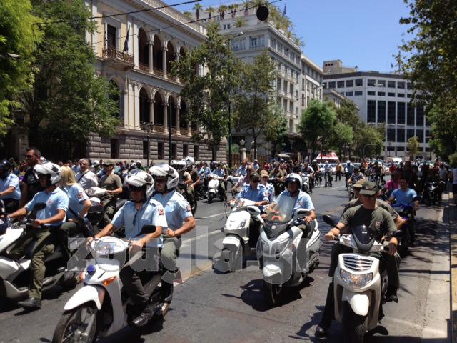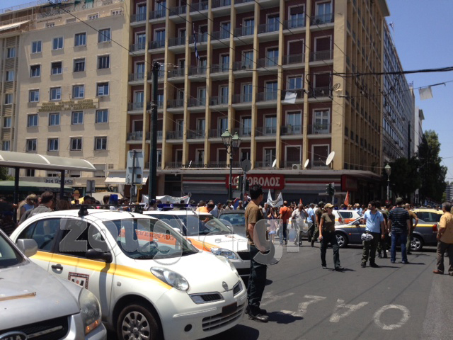 Η ΑΔΕΔΥ και η ΠΟΕ-ΟΤΑ συγκεντρώθηκαν το πρωί στην πλατεία Καραϊσκάκη και πραγματοποίησαν πορεία προς το Υπουργείο Διοικητικής Μεταρρύθμισης, χρησιμοποιώντας μάλιστα και οχήματα της Δημοτικής Αστυνομίας.