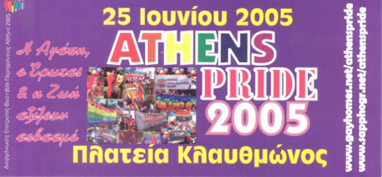 Τον Ιούνιο του 2005 και στην ουσία αποτέλεσε την πρώτη Παρέλαση Υπερηφάνειας που πραγματοποιήθηκε στο κέντρο της Αθήνας και πέρασε έξω από τη Βουλή.