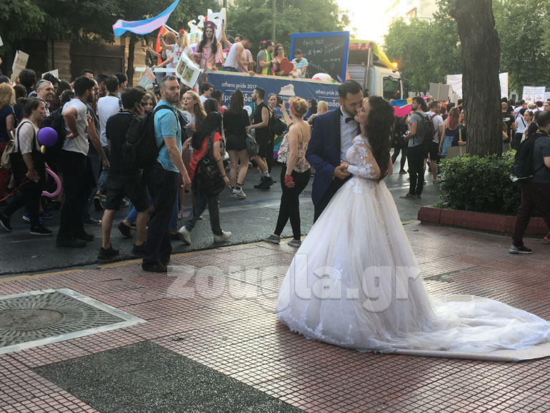 Ένα ζευγάρι επέλεξε να κάνει τη φωτογράφιση του γάμου του με φόντο την πορεία του Athens Pride 2017: