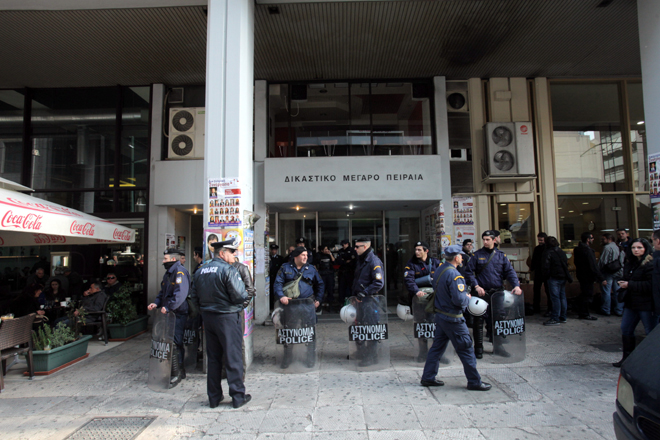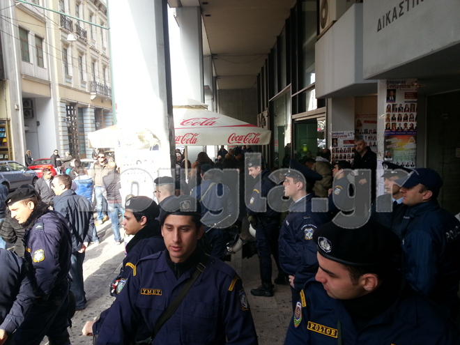 Έξω από τα δικαστήρια υπήρχαν συγγενείς των συλληφθέντων για συμπαράσταση.