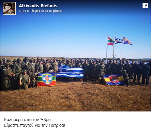 «Είμαστε παντού για την πατρίδα», ήταν το μήνυμα που έστειλε ο Αρχηγός του Γενικού Επιτελείου Στρατού, Αντιστράτηγος Αλκιβιάδης Στεφανής, από τον Έβρο από όπου βρίσκεται στο πλαίσιο της μεγάλης Εθνικής Διακλαδικής Άσκησης «Παρμενίων 2018», την ημέρα των γενεθλίων.