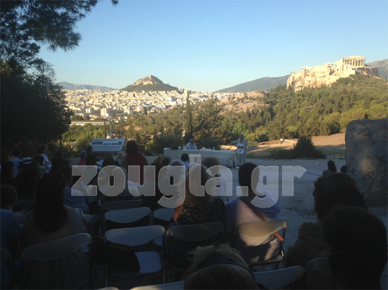 Σε ένα ειδυλλιακό τοπίο, στον λόφο της Πνύκας, ο υπουργός Εργασίας Γιώργος Κατρούγκαλος παρέστη τη Δευτέρα και ήταν κεντρικός ομιλητής σε ειδική συνεδρίαση του Παγκόσμιου Συνεδρίου Φιλοσοφίας.