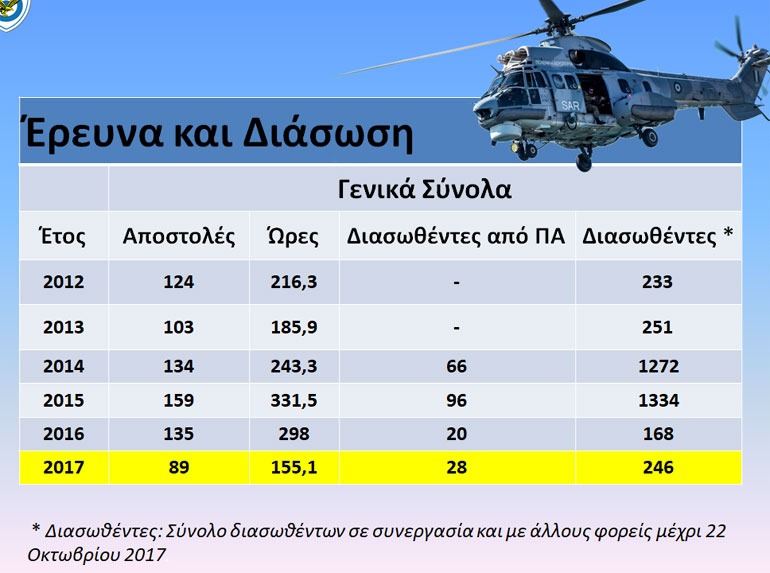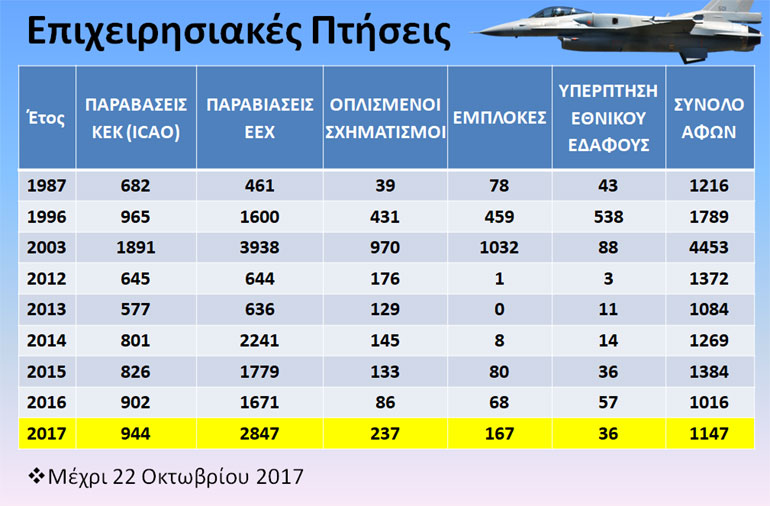 Οι επιχειρησιακές πτήσεις της Π.Α. για το 2017, μέχρι τα τέλη Οκτωβρίου: