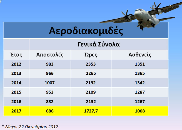 Οι αποστολές αεροδιακομιδών ασθενών: