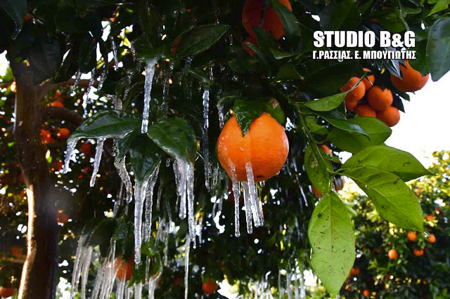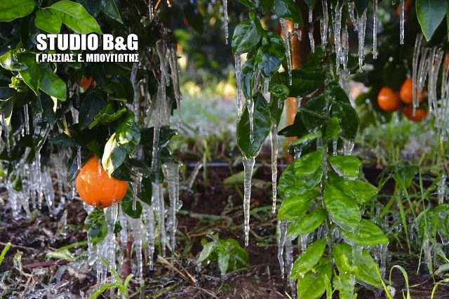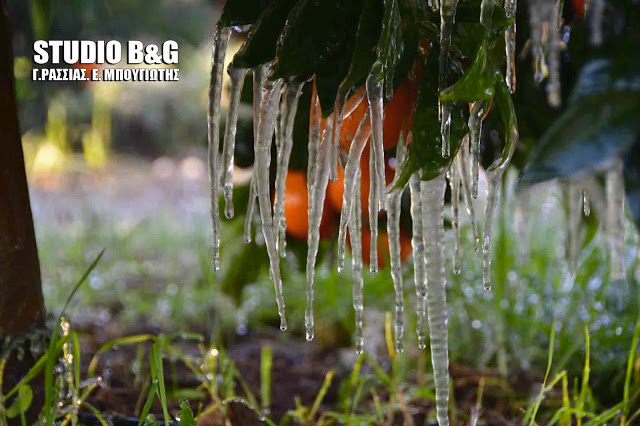 Από νωρίς τη νύχτα του Σαββάτου το θερμόμετρο στον αργολικό κάμπο κατρακύλησε κάτω από τους 0 βαθμούς Κελσίου.