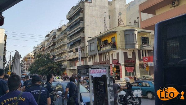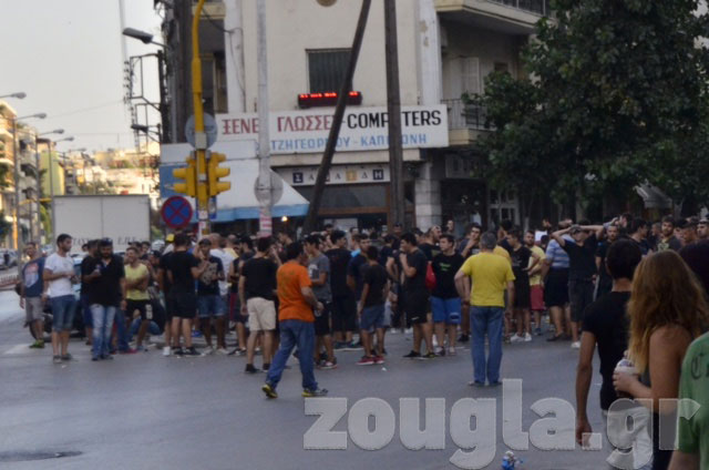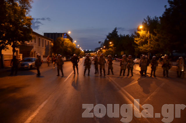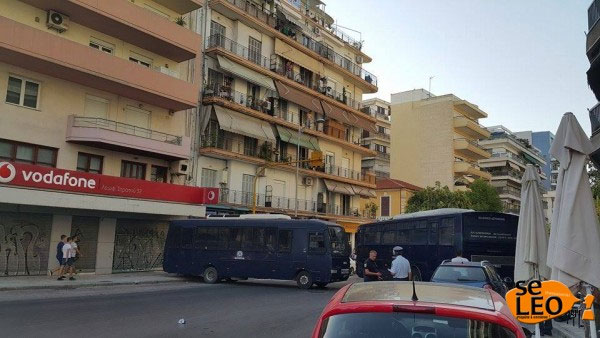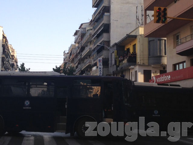 Πλήθος κόσμου συγκεντρώθηκε έξω από τον Σύνδεσμο των Ιερολοχιτών στη Λεωφ. Στράτου, στη συμβολή με Παπαναστασίου. Την ίδια στιγμή, κλούβες της αστυνομίας απέκλεισαν τον δρόμο που οδηγεί προς τον χώρο της ΔΕΘ.