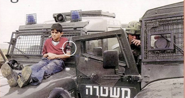 Παρόμοιες σκηνές έχουν καταγραφεί στη Λωρίδα της Γάζας, όταν ο ισραηλινός στρατός είχε δέσει ένα 13χρονο παιδί σε ένα τεθωρακισμένο και το χρησιμοποίησαν για ανθρώπινη ασπίδα.