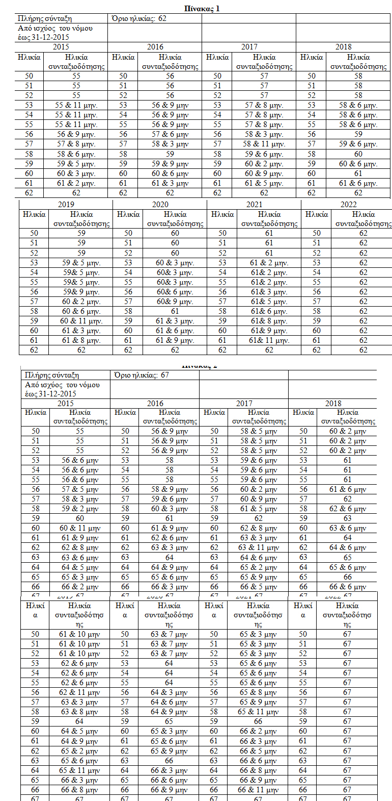 Σύμφωνα με την απόφαση την οποία υπογράφει ο υπουργός Γιώργος Κατρούγκαλος το όρια ηλικίας συνταξιοδότησης αυξάνονται έως το 2022 στα 62 χρόνια με 40 έτη προϋπηρεσίας και στα 67 με 35.