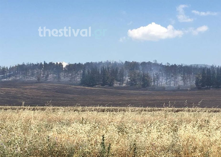 Επίσης, η Πυροσβεστική κλήθηκε να επέμβει και στα δυτικά της πόλης, καθώς εξαιτίας των υψηλών θερμοκρασιών σε συνδυασμό με τους ανέμους ξέσπασε φωτιά σε ξερά χόρτα κοντά στο νεκροταφείο του Ευόσμου.