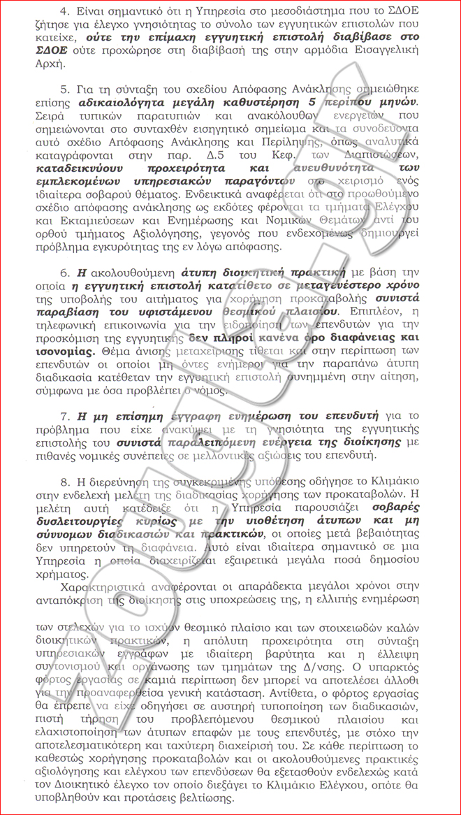 Κόλαφο αποτελεί για τη διαχρονική δράση υψηλόβαθμων στελεχών της Γενικής Διεύθυνσης Ιδιωτικών Επενδύσεων του υπουργείου Ανάπτυξης το πόρισμα των επιθεωρητών Δημόσιας Διοίκησης.