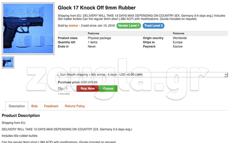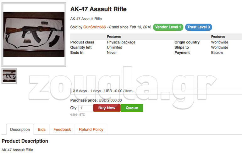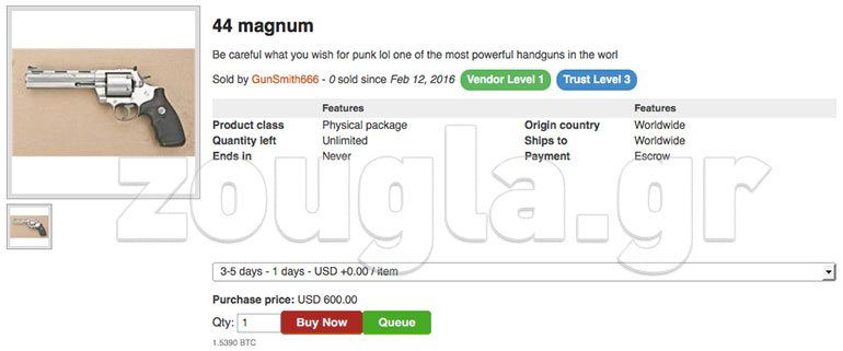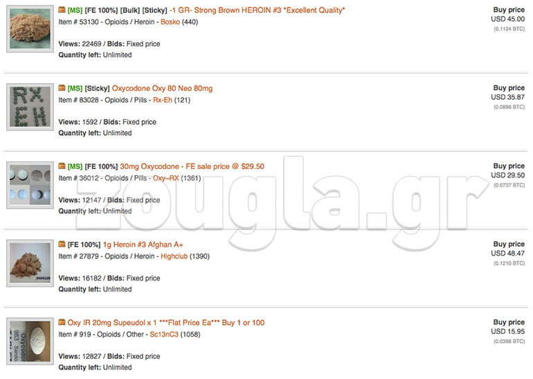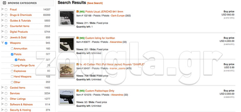 Όπως θα δείτε παρακάτω, τα εν λόγω «καταστήματα» σου δίνουν τη δυνατότητα να παραγγείλεις από όποιο είδος ναρκωτικών επιθυμείς μέχρι κοσμήματα, πιστόλια τύπου Magnum, ακόμα και άτομα που διατίθενται να τοποθετήσουν εκρηκτικά σε δημόσια κτήρια.