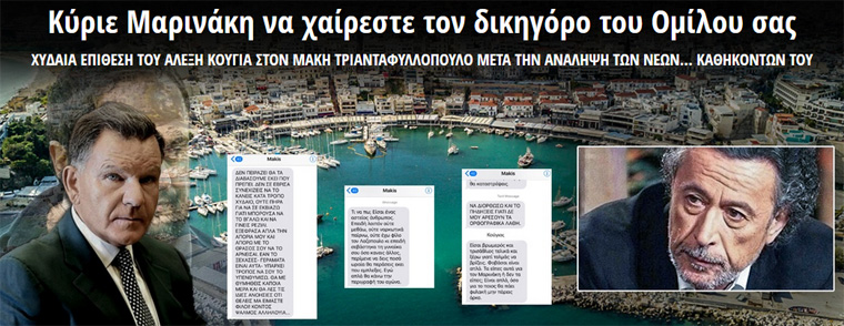 Σας ενημερώσαμε από την Τετάρτη 19 Ιουλίου πως θα επανέλθουμε στο θέμα των SMS του Αλέξη Κούγια προς τον Μάκη Τριανταφυλλόπουλο. Ιδιαίτερα, δε, σε ένα από αυτά που αφορά στην επίσκεψη του δημοσιογράφου στα γραφεία του εφοπλιστή Νίκου Πατέρα.