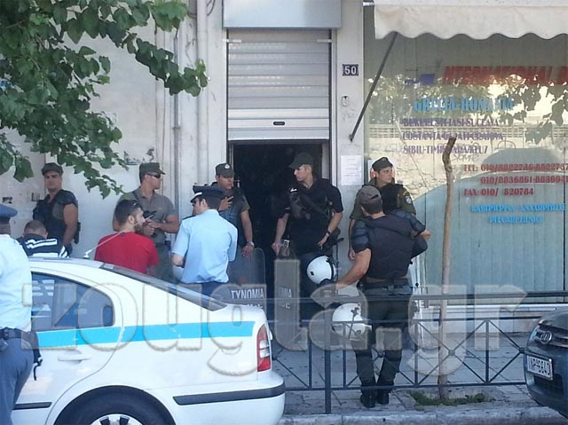 (Η αστυνομία στα γραφεία της Χρυσής Αυγής στην οδό Δεληγιάννη)