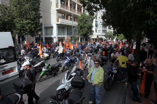 Τα ΜΑΤ επεχείρησαν να περικυκλώσουν τους διαδηλωτές, για να τους απομακρύνουν, ενώ στο σημείο κατέφθασε και γερανός για να «σηκώσει» τα δίκυκλα των συνδικαλιστών. Δημιουργήθηκε μικρή ένταση, αλλά τελικά λίγο μετά τις 13.20 τα πνεύματα ηρέμησαν.