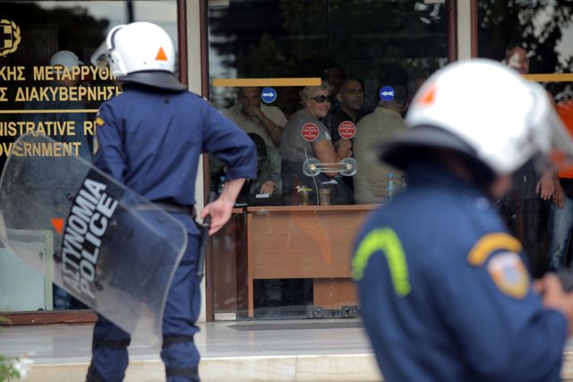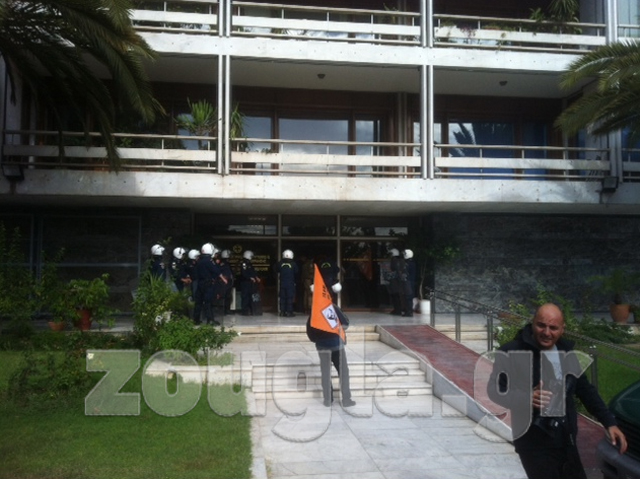 Δεκάδες μέλη της ΠΟΕ-ΟΤΑ, που αντιδρούν στις περικοπές των μισθών, συγκεντρώθηκαν αιφνιδίως στο Υπουργείο Διοικητικής Μεταρρύθμισης και προχώρησαν σε κατάληψη, προτού προλάβουν τα ΜΑΤ να αποκλείσουν την είσοδο του κτηρίου.
