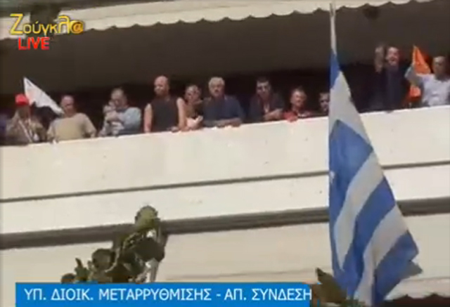 Στις 14.00 οι διαδηλωτές αποχώρησαν, μετά και την ολιγόλεπτη συνάντηση με τον υπουργό, Αντώνη Μανιτάκη. Σύμφωνα με τον κ. Μπαλασόπουλο, κύριο θέμα συζήτησης ήταν οι απολύσεις στο Δημόσιο. Αν και ο κ. Μανιτάκης διαβεβαίωσε πως στο πρόγραμμα δεν υπάρχουν απολύσεις των δημοσίων υπαλλήλων, ο πρόεδρος της ΠΟΕ-ΟΤΑ δήλωσε πως «δεν τους έχουμε καμία εμπιστοσύνη. Δεν εμπιστευόμαστε μια κυβέρνηση που τις φέρνουν γραμμένο ό,τι και αν κάνει».