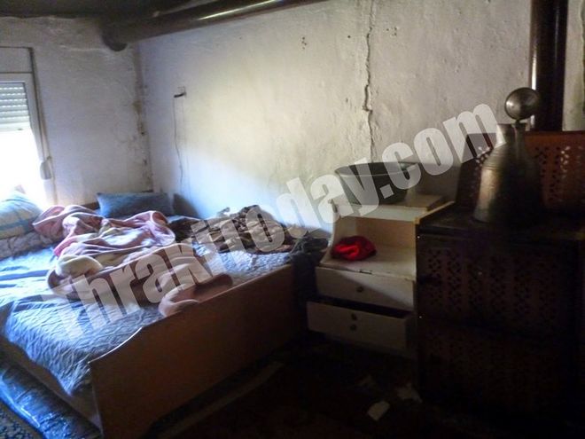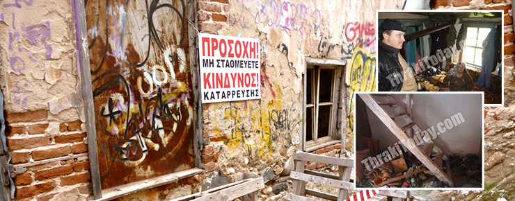 δεύτερο όροφο, δεν υπάρχει ταβάνι, παρά μόνο η σκεπή, στην οποία εντοπίζονται ρωγμές. Τρεις χώροι κατοικούνται συνολικά, κι αυτοί όμως βρίσκονται σε εξίσου άθλια κατάσταση. Το πάτωμα του κτηρίου έχει καλυφθεί από στρώμα χώματος, το οποίο, όπως αναφέρουν οι ένοικοι, δημιουργήθηκε από τις βροχοπτώσεις.Η θέρμανση του χώρου γίνεται με σόμπες, το γεγονός όμως ότι το σπίτι περιστοιχίζεται από ξύλινες πρόχειρες κατασκευές καθιστά επικίνδυνη τη χρήση τους. Εντός του μισογκρεμισμένου σπιτιού δεν υπάρχει καν τουαλέτα, καθώς αυτή βρίσκεται έξω, σε άλλον χώρο.