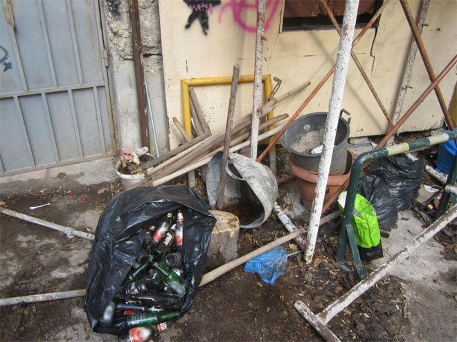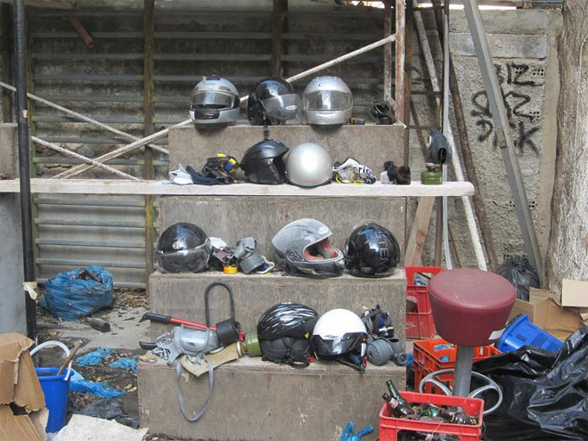 Βρέθηκαν και κατασχέθηκαν, μεταξύ άλλων, κράνη, αντιασφυξιογόνες μάσκες και μία αυτοσχέδια ασπίδα.