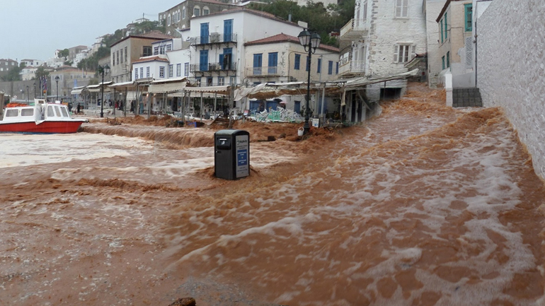 Όπως φαίνεται και στα παρακάτω βίντεο του hydraspoliteia.blogspot.gr, οι χείμαρροι παρέσυραν ό,τι έβρισκαν μπροστά τους με το νησί να θυμίζει βομβαρδισμένο τοπίο.