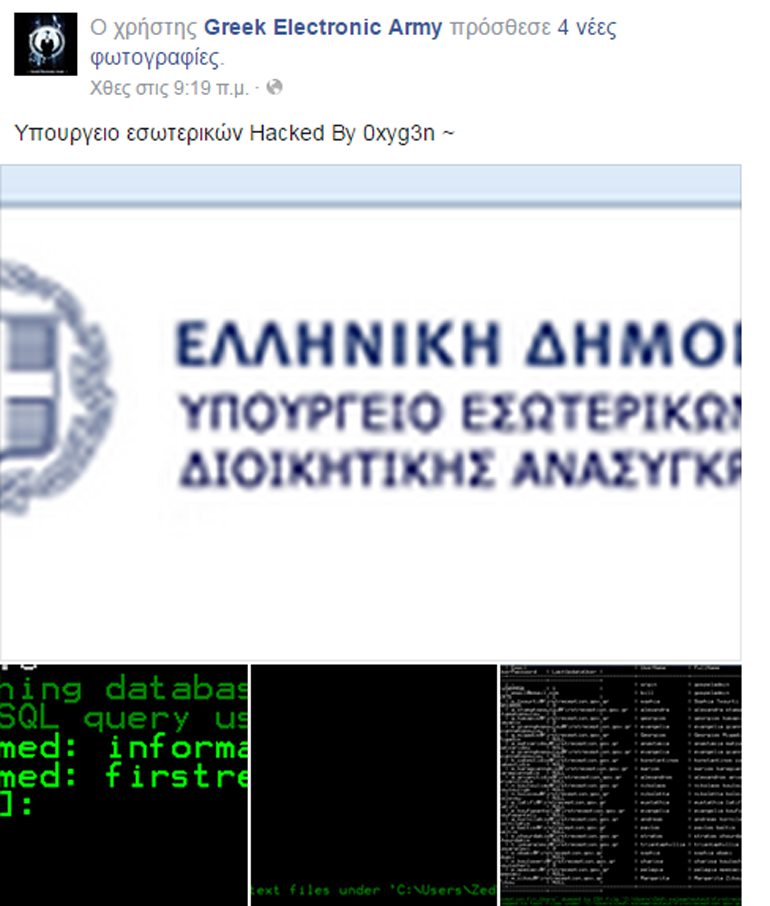 Όπως οι χάκερ δημοσίευσαν στη σελίδα τους στο Facebook, κατάφεραν να αποκτήσουν κωδικούς εισόδων υπαλλήλων του Yπουργείου. Mάλιστα, ανήρτησαν φωτογραφίες προς απόδειξη της δράσης τους.
