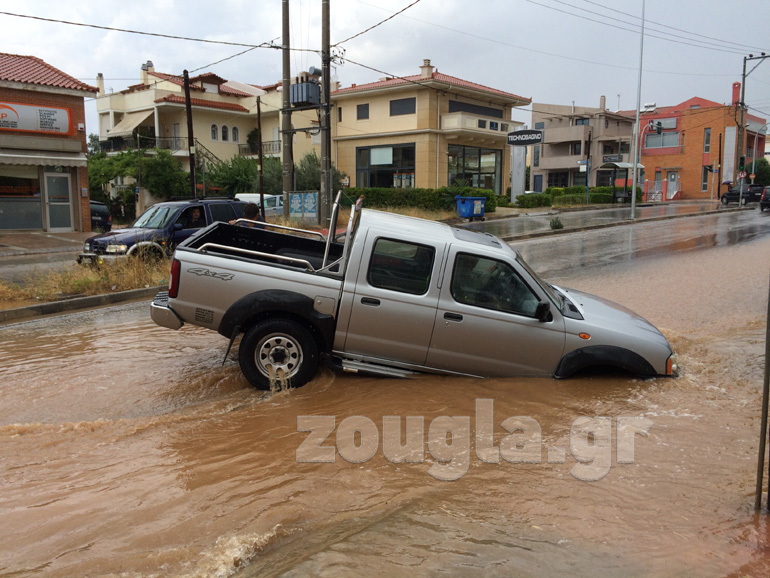 Στο σημείο υπήρχε “γούβα” που είχε καλυφθεί από τα νερά της βροχής, με αποτέλεσμα να “εγκλωβιστεί” το αυτοκίνητο στο σημείο. Εκτός από τον οδηγό στο όχημα βρίσκονταν μια γυναίκα και ένα παιδί, το οποίο όπως είναι λογικό φοβήθηκε, έκλαιγε κλπ.