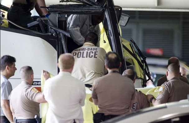 Τραγικό θάνατο βρήκαν το πρωί του Σαββάτου, τοπική ώρα Η.Π.Α., δύο επιβάτες λεωφορείου, η οροφή του οποίου προσέκρουσε με δύναμη πάνω σε γέφυρα στο Διεθνές Αεροδρόμιο του Μαϊάμι, μετέδωσε το Associated Press.