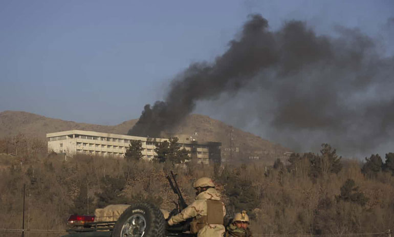 Η ηλεκτροδότηση είχε κοπεί στο ξενοδοχείο, που βρίσκεται σε ένα λόφο στη δυτική Καμπούλ, με αποτέλεσμα το κτίριο να βυθιστεί στο σκοτάδι, με εξαίρεση τις φλόγες που φαίνονταν να βγαίνουν από τη στέγη του, εξαιτίας της πυρκαγιάς που προκάλεσαν οι δράστες.