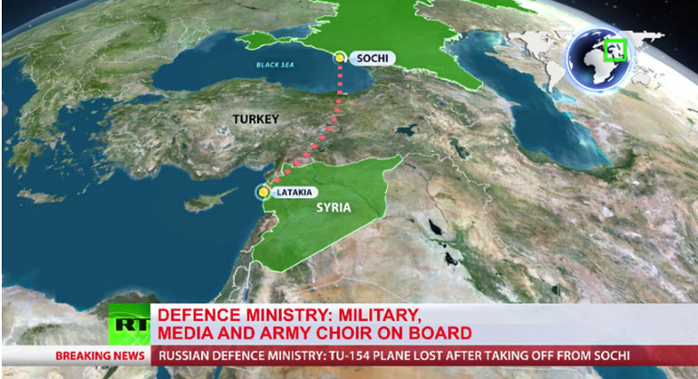 Στη δημοσιότητα δόθηκε από τα ρωσικά μέσα ενημέρωσης βίντεο που φαίνεται το πολεμικό αεροσκάφος τύπου Τουπόλεφ να απογειώνεται στις 05:40 τα ξημερώματα (τοπική ώρα), από το αεροδρόμιο Αντλέρ, στο Σότσι, το ρωσικό θέρετρο στην Μαύρη Θάλασσα.