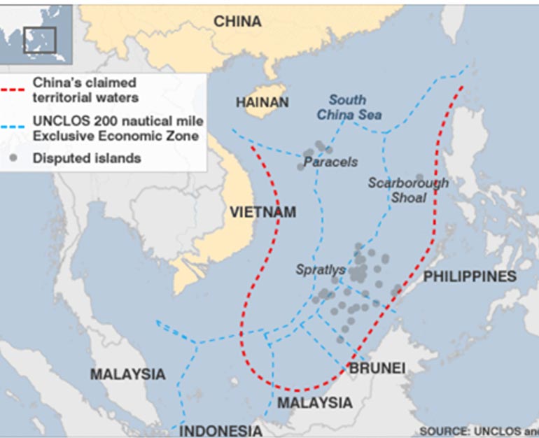 Όπως υποστηρίζει το CNN, η Κίνα διεκδικεί ως χωρικά ύδατα σχεδόν το σύνολο της Θάλασσας της Νότιας Κίνας, αποκλείοντας τα δικαιώματα των γειτονικών χωρών της. Κινέζοι αξιωματούχοι, αναφερόμενοι στις συνεχείς δηλώσεις Αμερικανών επισήμων για το ζήτημα αυτό, τις χαρακτηρίζουν «ανεδαφικές και μη εποικοδομητικές».