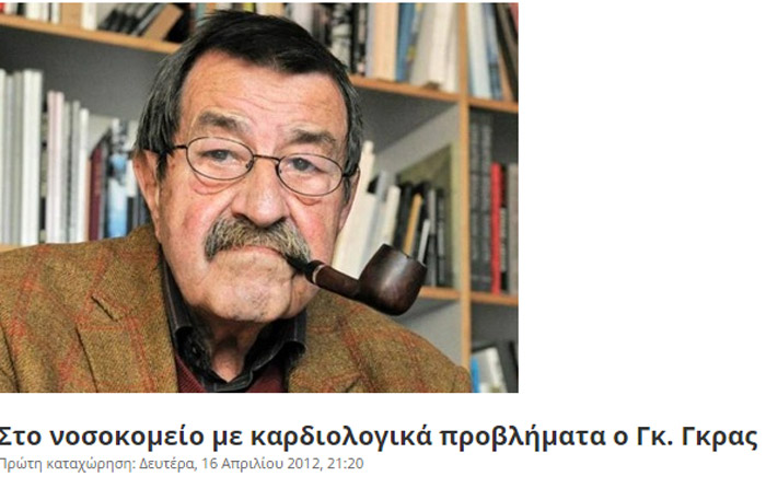 Ο Γερμανός συγγραφέας και ποιητής Γκύντερ Γκρας, βραβευμένος με το Νόμπελ Λογοτεχνίας το 1999, πέθανε σήμερα σε ηλικία 87 ετών, ανακοίνωσε το ίδρυμα που φέρει το όνομά του.